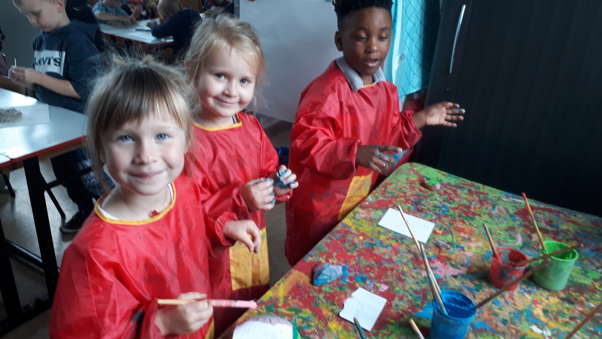 Tijdens een leuke wandeling leerden we heel wat verkeersborden kennen. We oefenden ook om veilig over te steken.